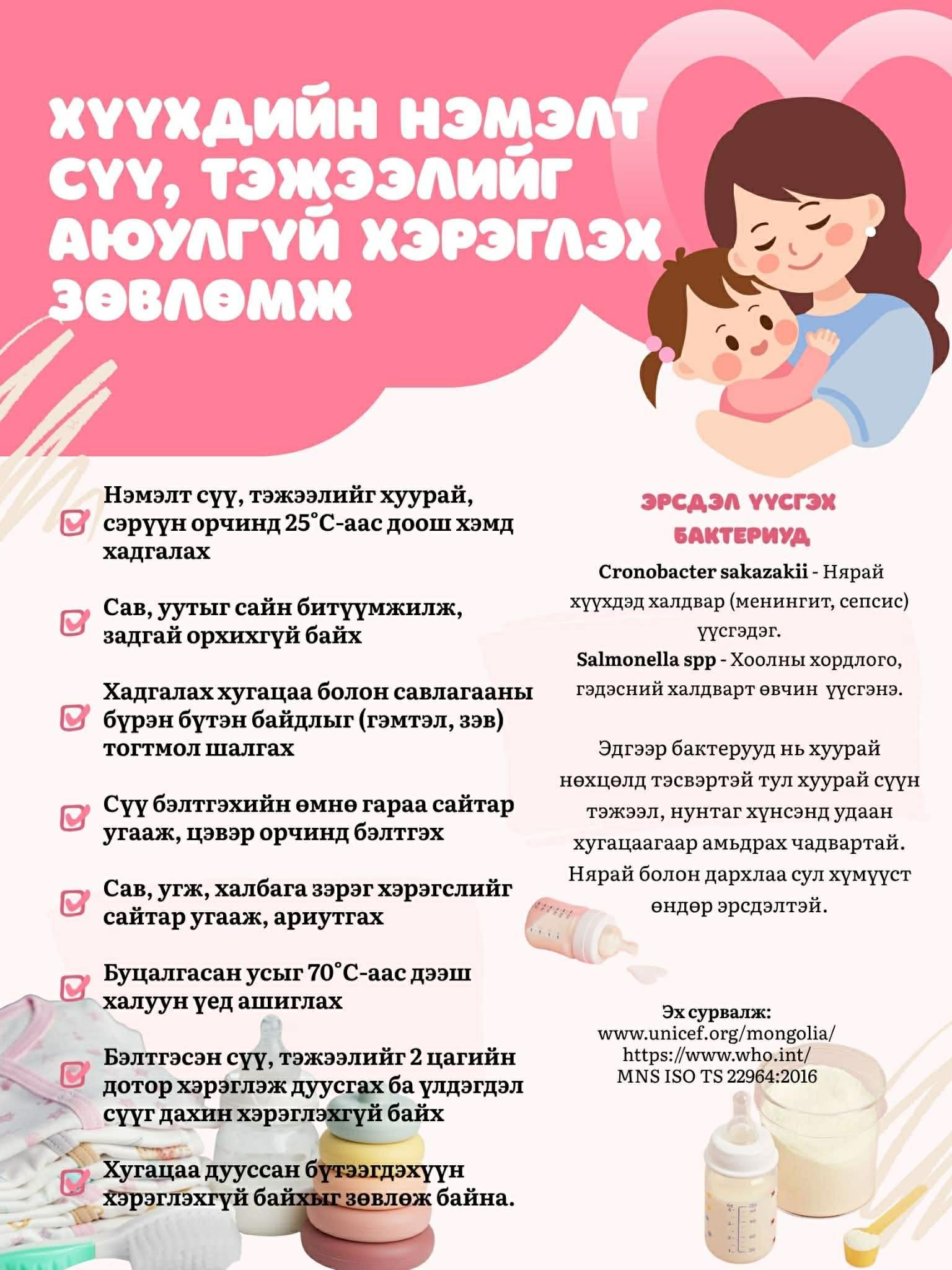 ХҮҮХДИЙН НЭМЭЛТ СҮҮ, ТЭЖЭЭЛИЙГ АЮУЛГҮЙ ХЭРЭГЛЭХ ЗӨВЛӨМЖ