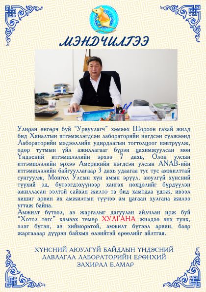 ХҮНСНИЙ АЮУЛГҮЙ БАЙДЛЫН ҮНДЭСНИЙ ЛАВЛАГАА ЛАБОРАТОРИЙН 2026 ОНЫ ТӨСВИЙН ТӨСӨЛ